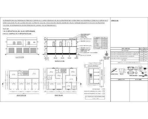 Detailed section view showcasing structural components and dimensions.Elevation drawing illustrating building's exterior structure and design elements